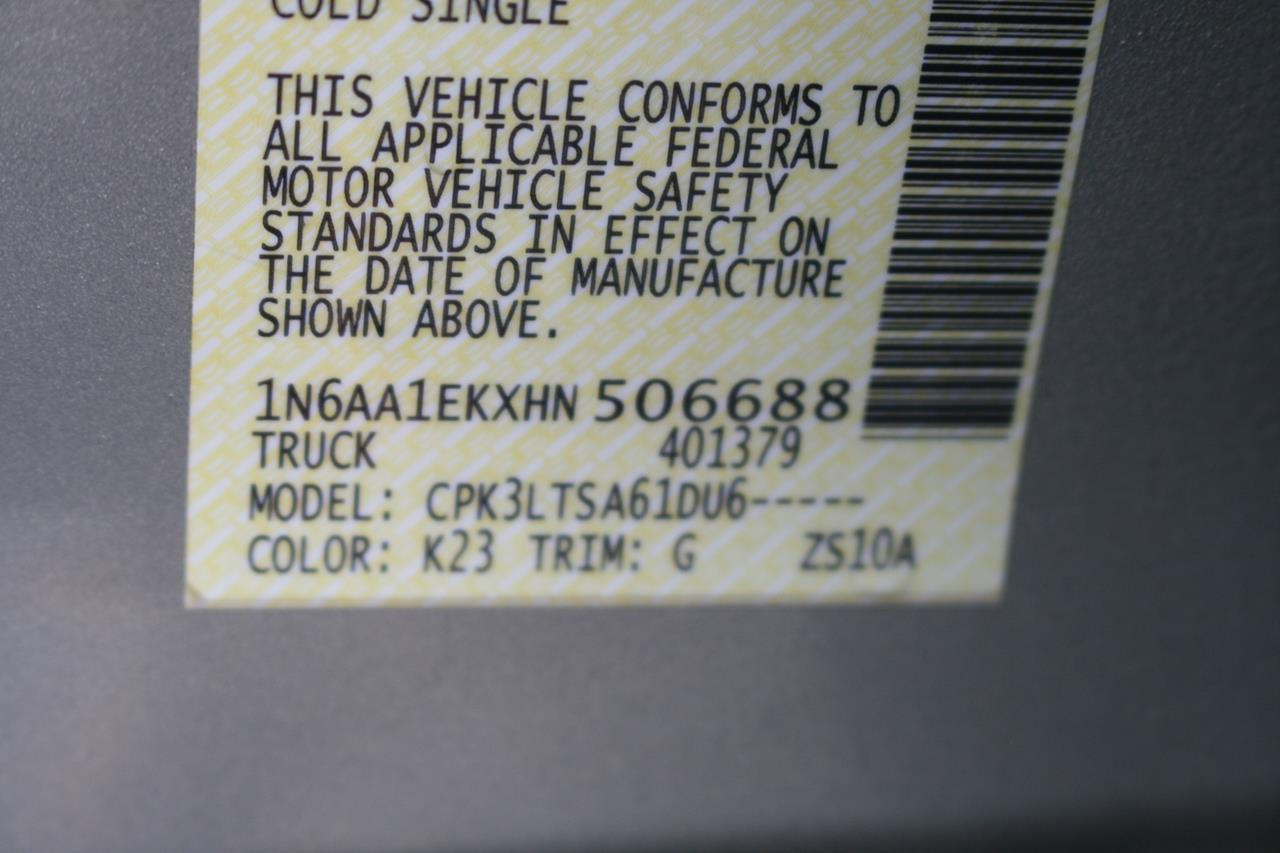 Amazing is one word that describes our 2017 Nissan Titan SV shown off in a lustrous Brilliant Silver. Powered by a 5.6 Liter V8 that offers 390hp on demand while connected to a sturdy 7 Speed Automatic transmission. Our Rear Wheel Drive can handle muddy rural roads, mountain terrain, towing your boat, or hauling lumber are no challenge for our Titan all while offering near 21mpg. The beefy front suspension eases you down the road in comfort while the rear set up is tough enough to keep up with your demanding life.This truck looks sharp with 18 inch alloy ION rims and an aftermarket level kit.