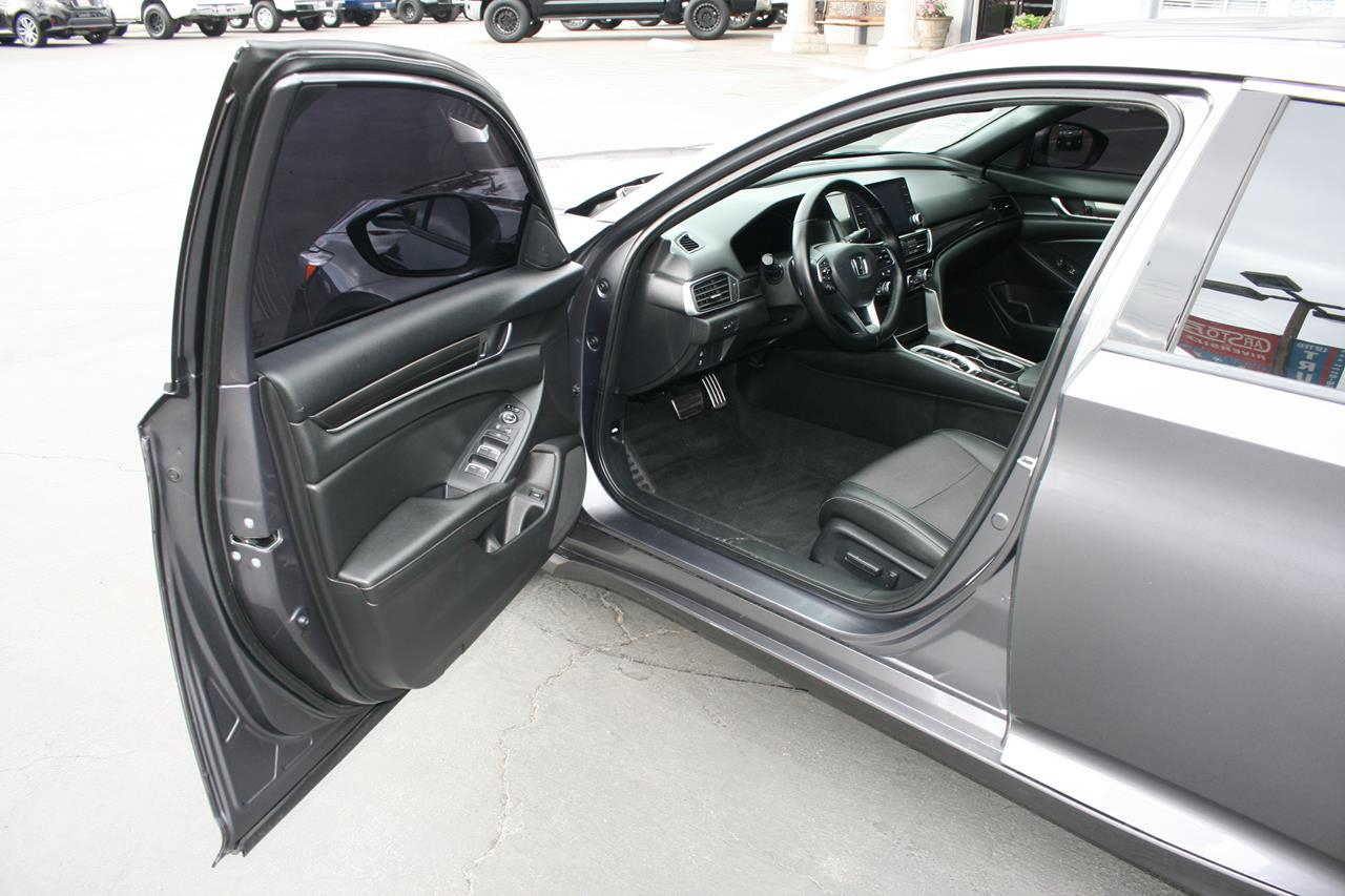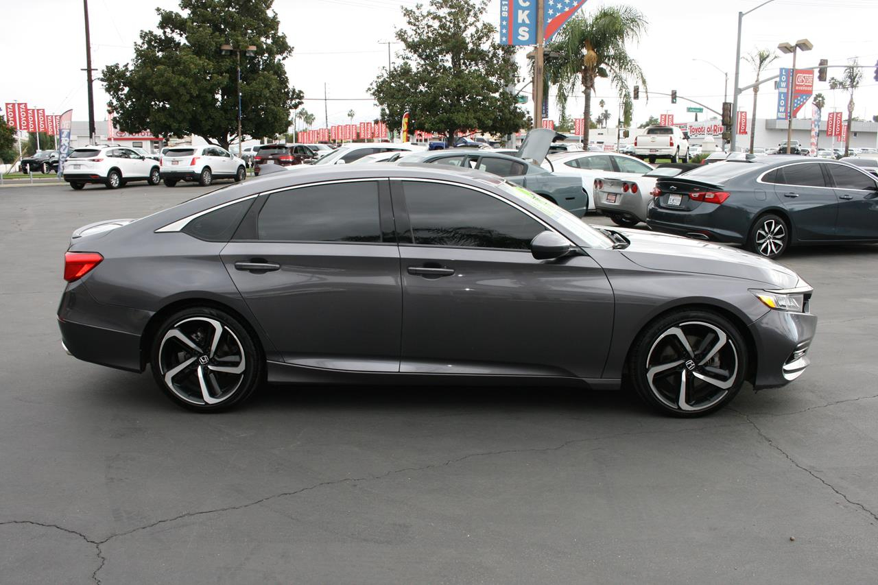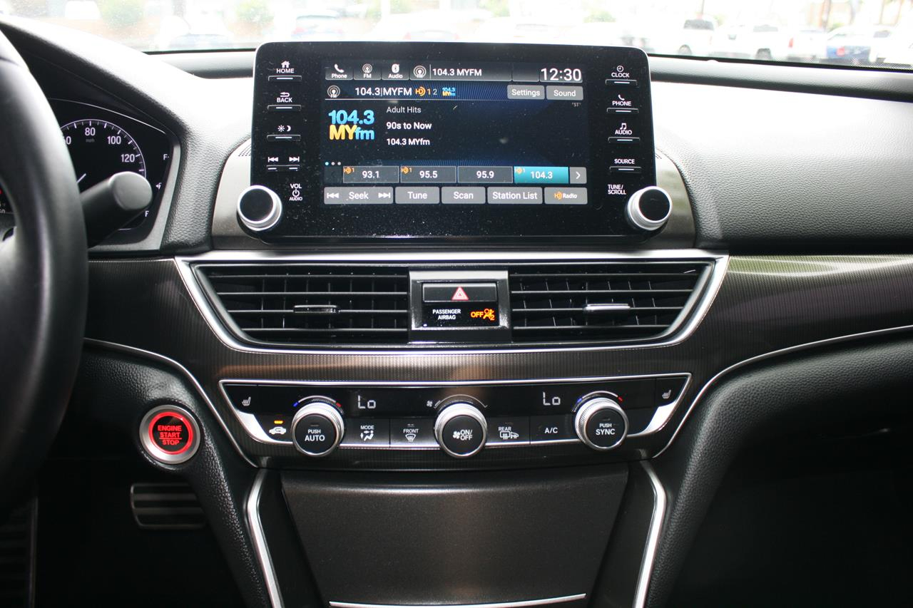 Reconnect with your love of driving behind the wheel of our 2019 Honda Accord Sport Sedan that's sculpted to perfection in Modern Steel Metallic! Powered by a proven 2.0 Liter 4 Cylinder turbocharged engine that offers 252hp that's perfectly paired with a smooth-shifting 10-speed automatic transmission with paddle shifters for passing ease. This winning Front Wheel Drive combination delivers efficiency without sacrificing performance so you can score near 32mpg on the highway while enjoying a brilliant drive. Our dramatically-styled Accord Sport slips through the air with ease and makes a lasting impression with its sculpted lines and classically elegant profile. Notice the beautiful aluminum alloy wheels and chiseled curves.