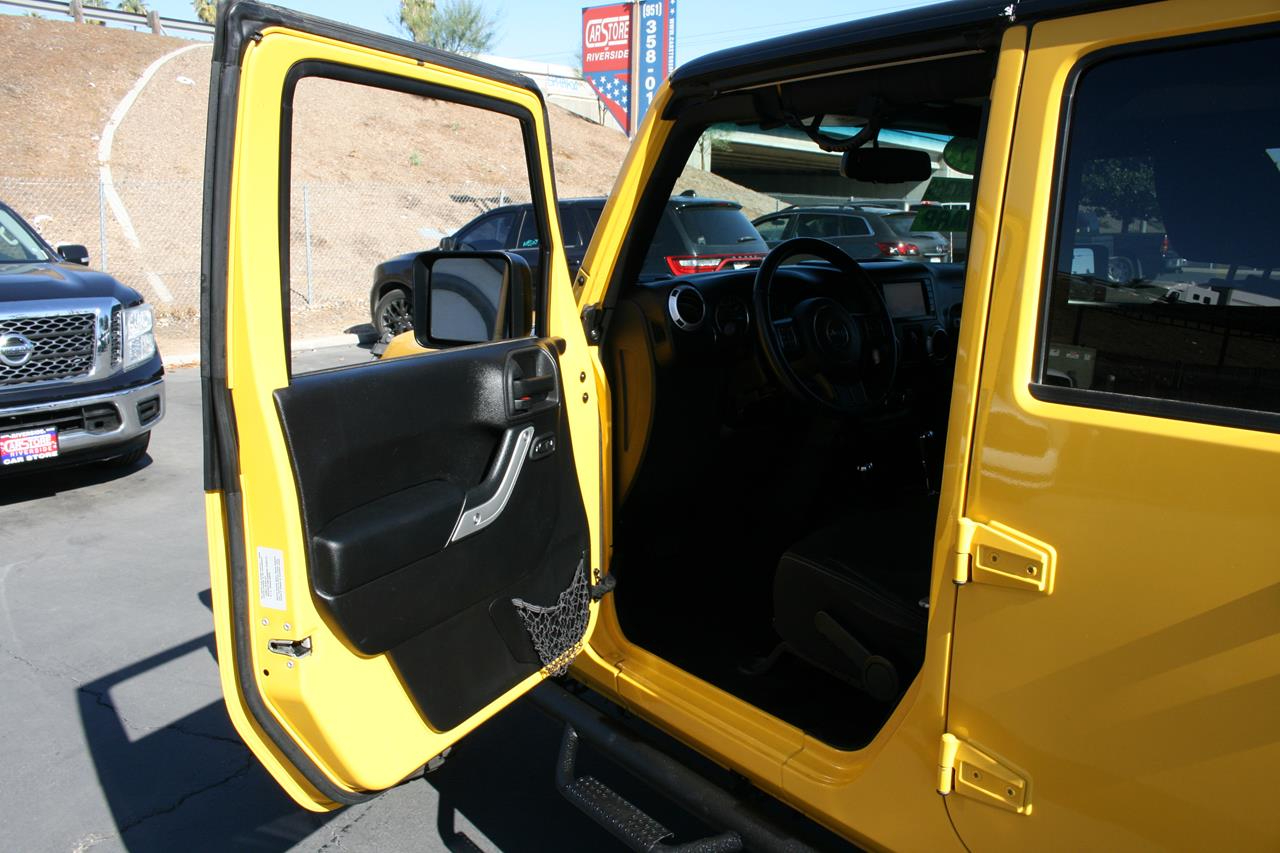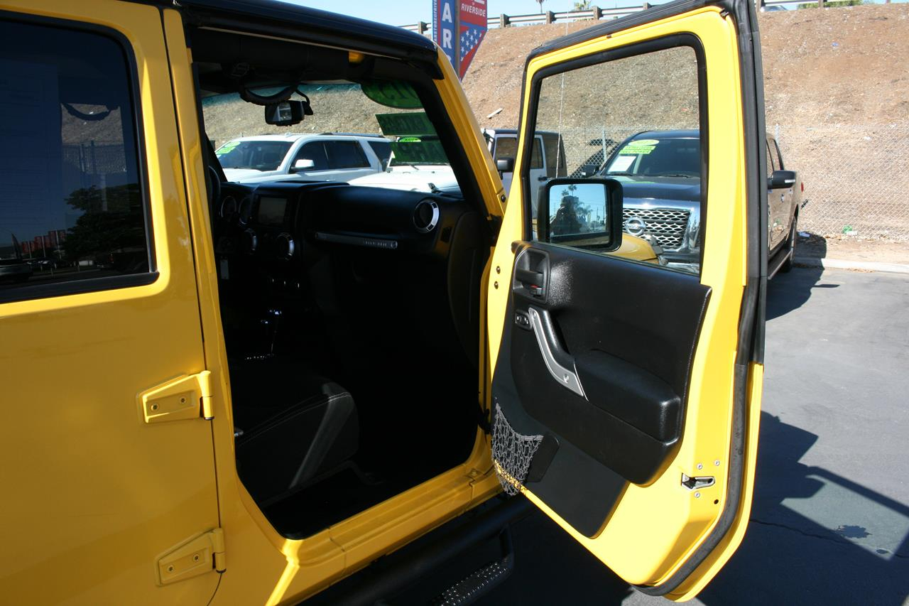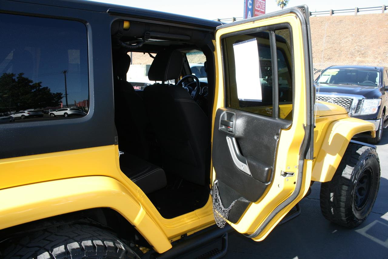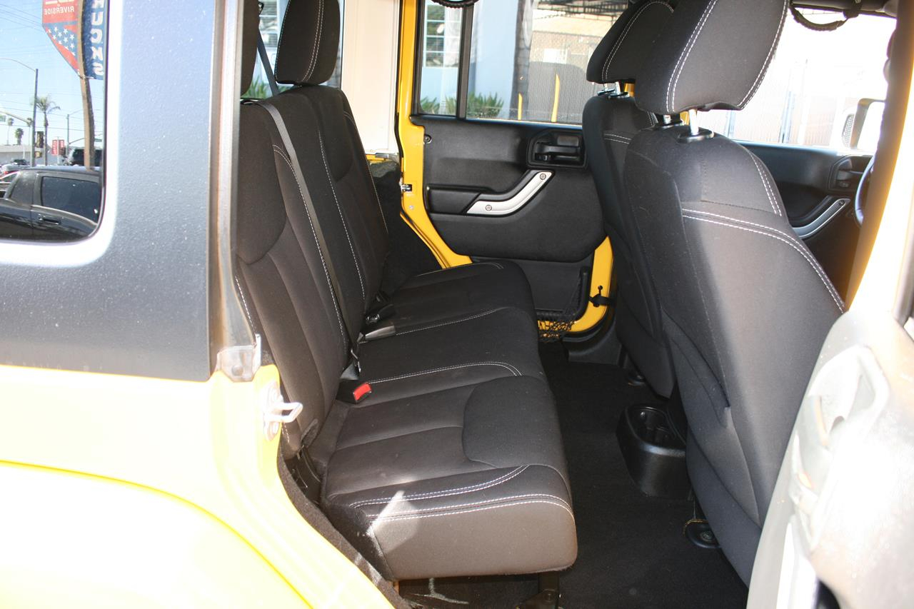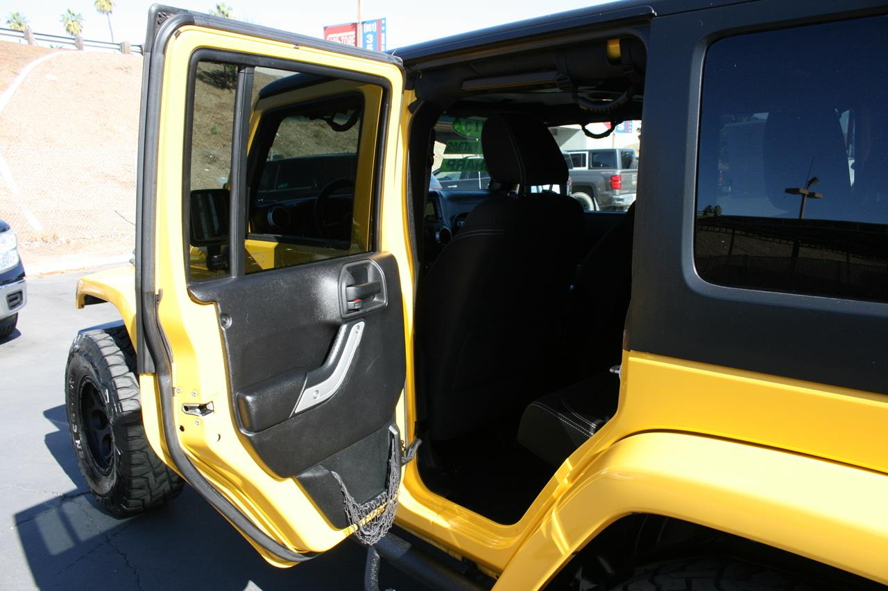Our 2015 Jeep Wrangler Unlimited Sahara 4x4 shown in a Baja Yellow paint scheme, is ready to handle everything thrown its way. Powered by a 3.6 Liter V6 that produces 285hp and almost as much torque while combined with the rock-solid Dana axles managed by a 5 Speed Automatic transmission. This Four Wheel Drive will allow you to maintain civility or let you carve your path where ever you see fit while offering near 21mpg. With city streets and freeways providing an increasingly unfriendly atmosphere to standard, car-based suspensions, large tires and real ground clearance are increasingly handy for the committed urbanite. Take a look at one of the most widely recognized terrain busting, four-door vehicles in the world. This Jeep looks sharp with 17 inch alloy KMC rims, N-Fab rock sliders and a 3 inch Terraflex 9550 lift!