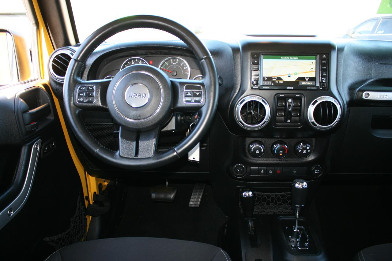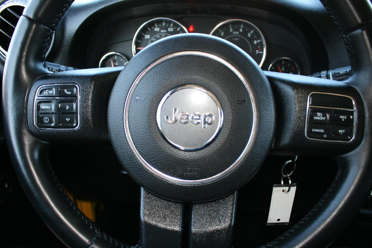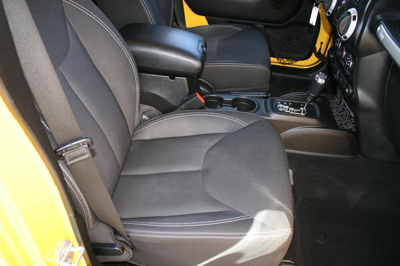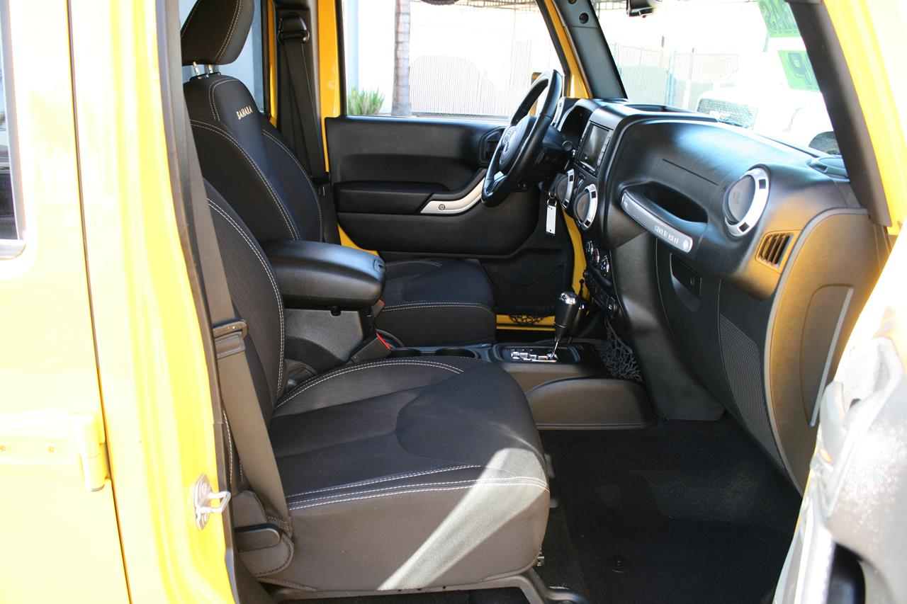 Stepping in or out of most potholes does nothing more than spill your drink. This Jeep is loaded. It has full power accessories, comfortable cloth seating, a leather steering wheel with audio controls and audio auxiliary input for the stereo. If you get the urge to take an open-air cruise, just remove the top, put on some shades, crank up the amazing sound system, and hit the road!