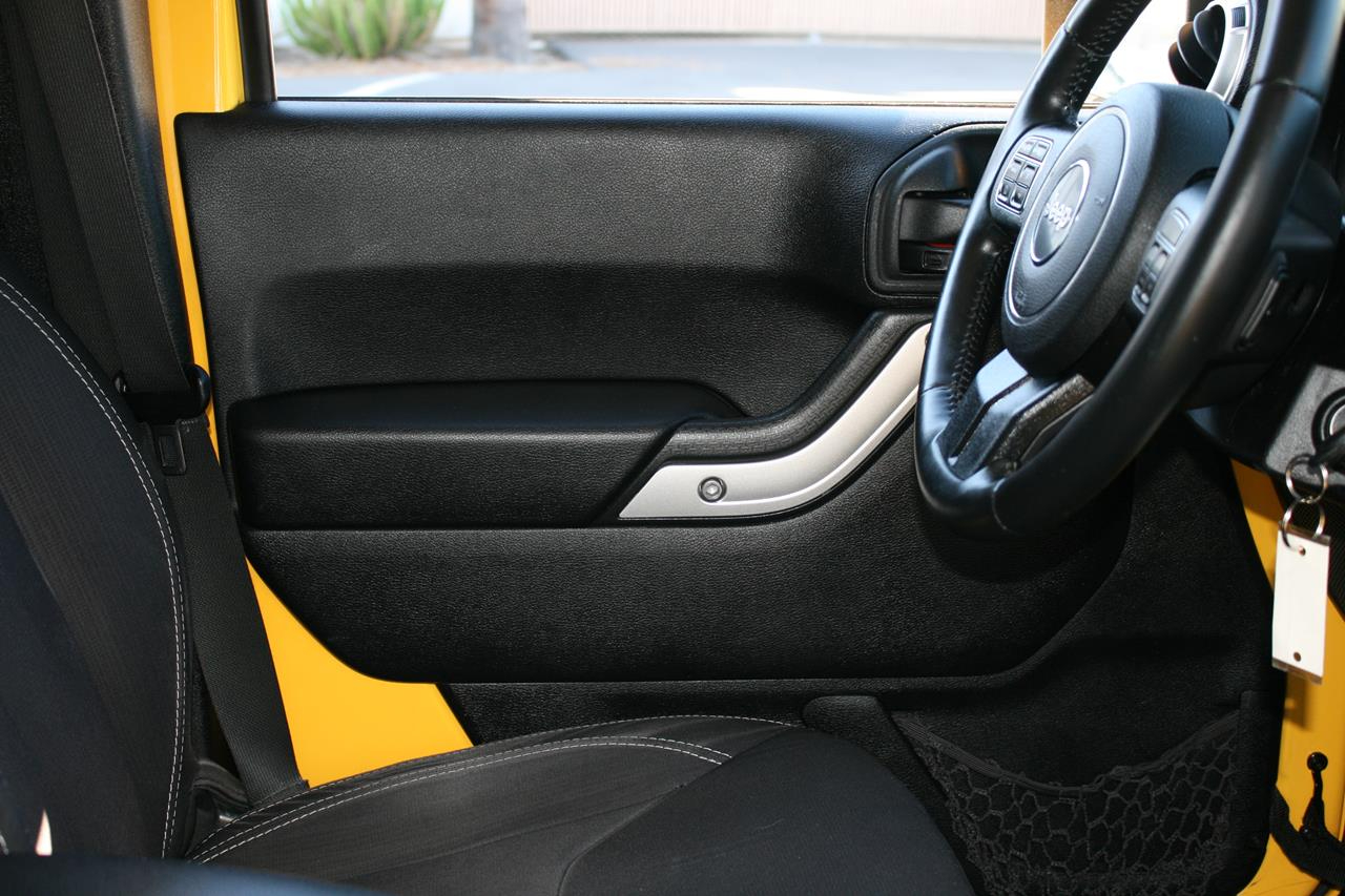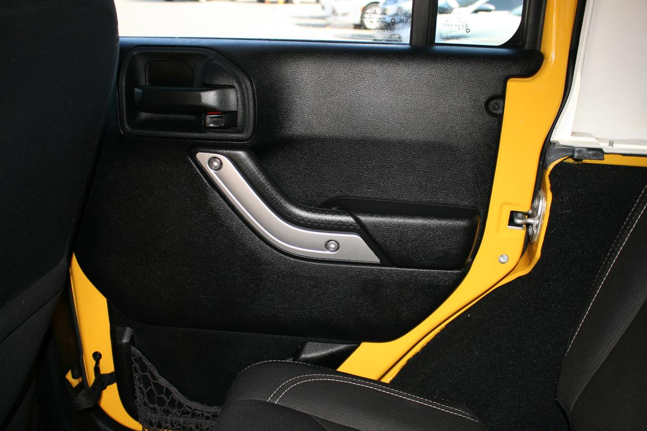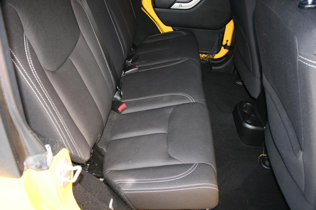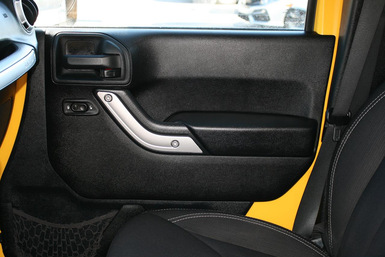 Stepping in or out of most potholes does nothing more than spill your drink. This Jeep is loaded. It has full power accessories, comfortable cloth seating, a leather steering wheel with audio controls and audio auxiliary input for the stereo. If you get the urge to take an open-air cruise, just remove the top, put on some shades, crank up the amazing sound system, and hit the road!
