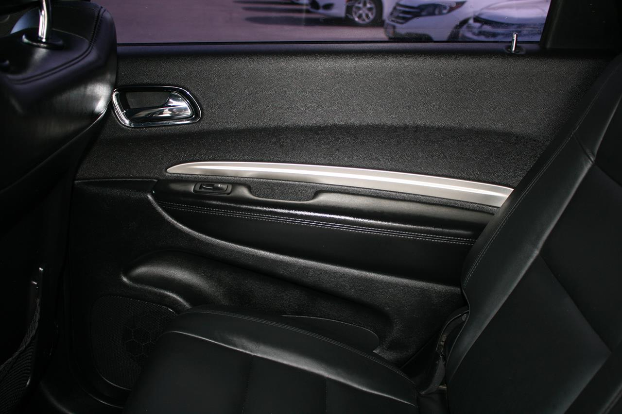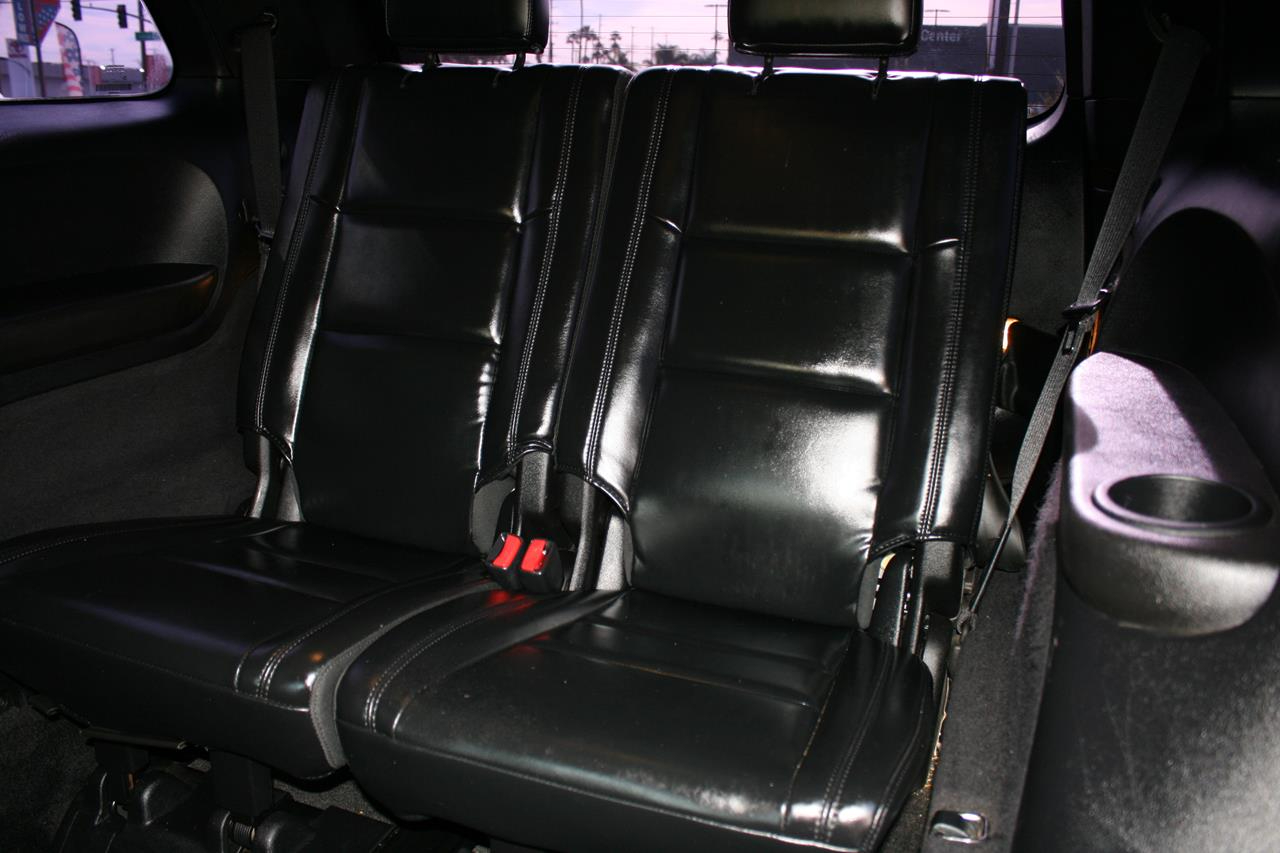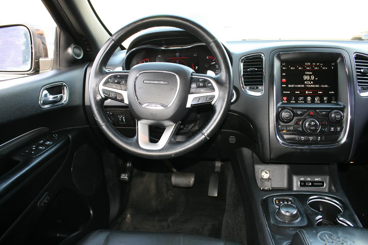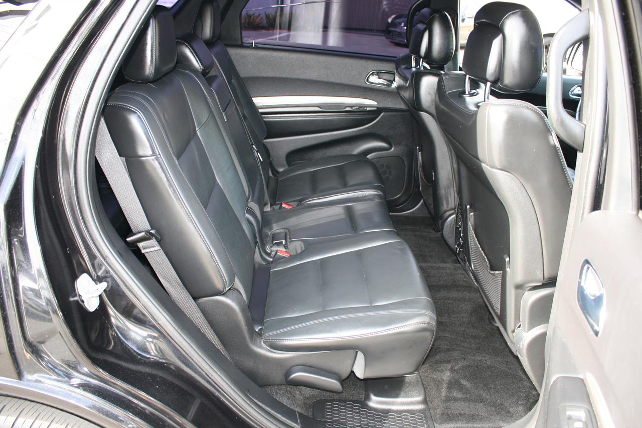 As you can see, the leather-trimmed interior is full of features to fulfill the driver's needs as well as passengers' demands. Inside you will find an incredible dash mounted media center, powered and heated front seats, a memory driver's seat, keyless ignition, a leather steering wheel with audio controls, Bluetooth technology, and a great sound system with USB connection and audio auxiliary input. Seating is flexible and adaptable for all of life's needs. Innovative fold and tumble seats provide lots of combinations that maximize the utility of the Durango, giving plenty of room for the family vacation.
