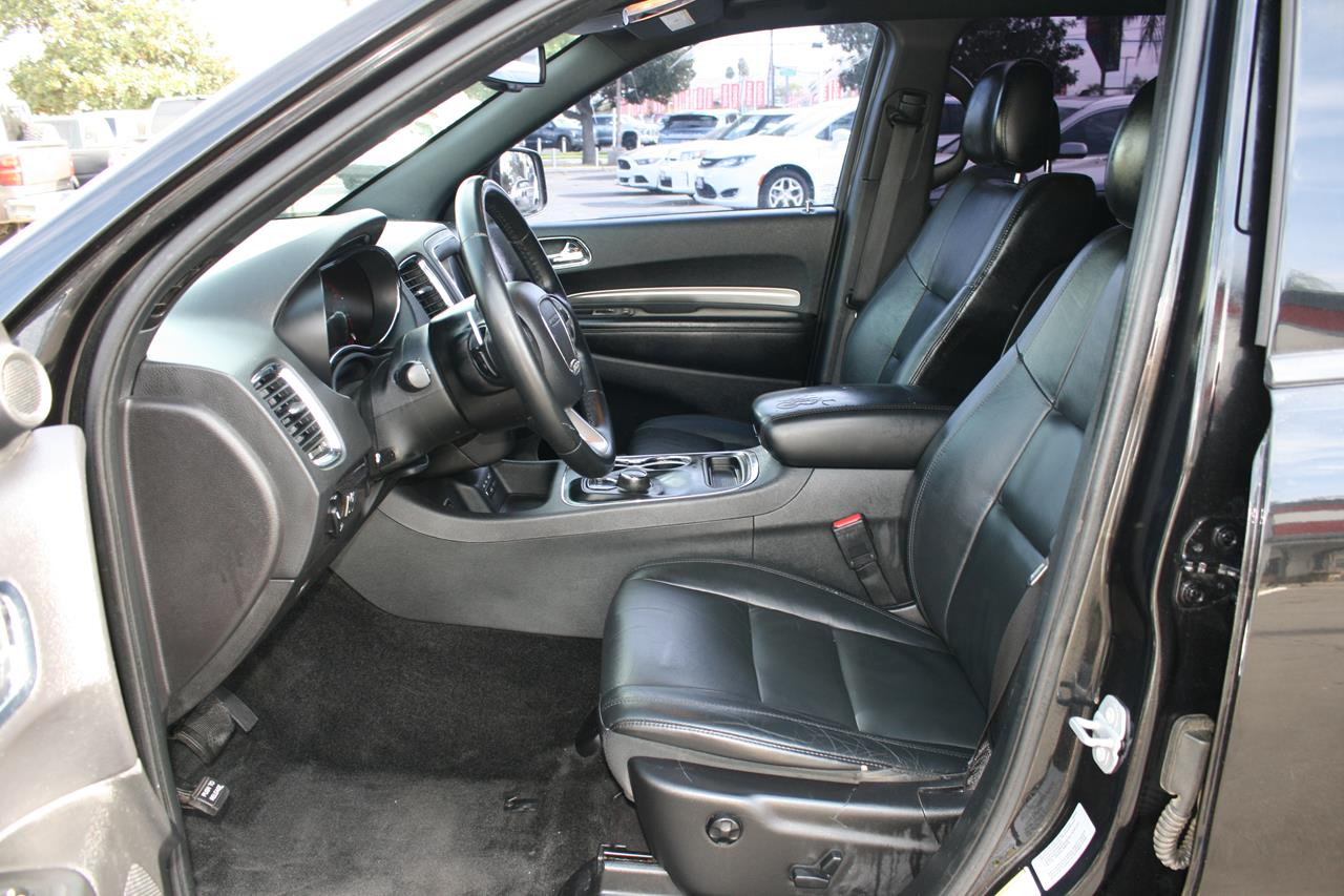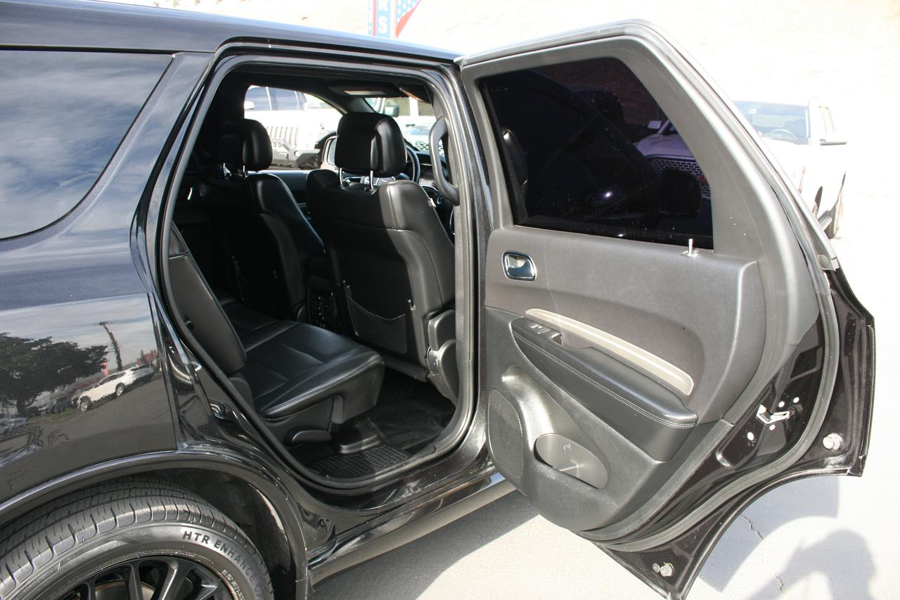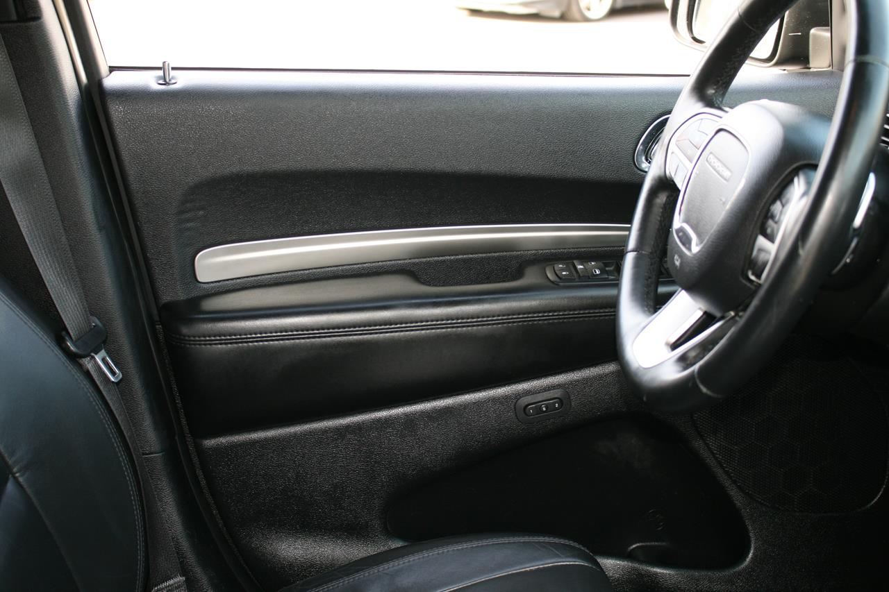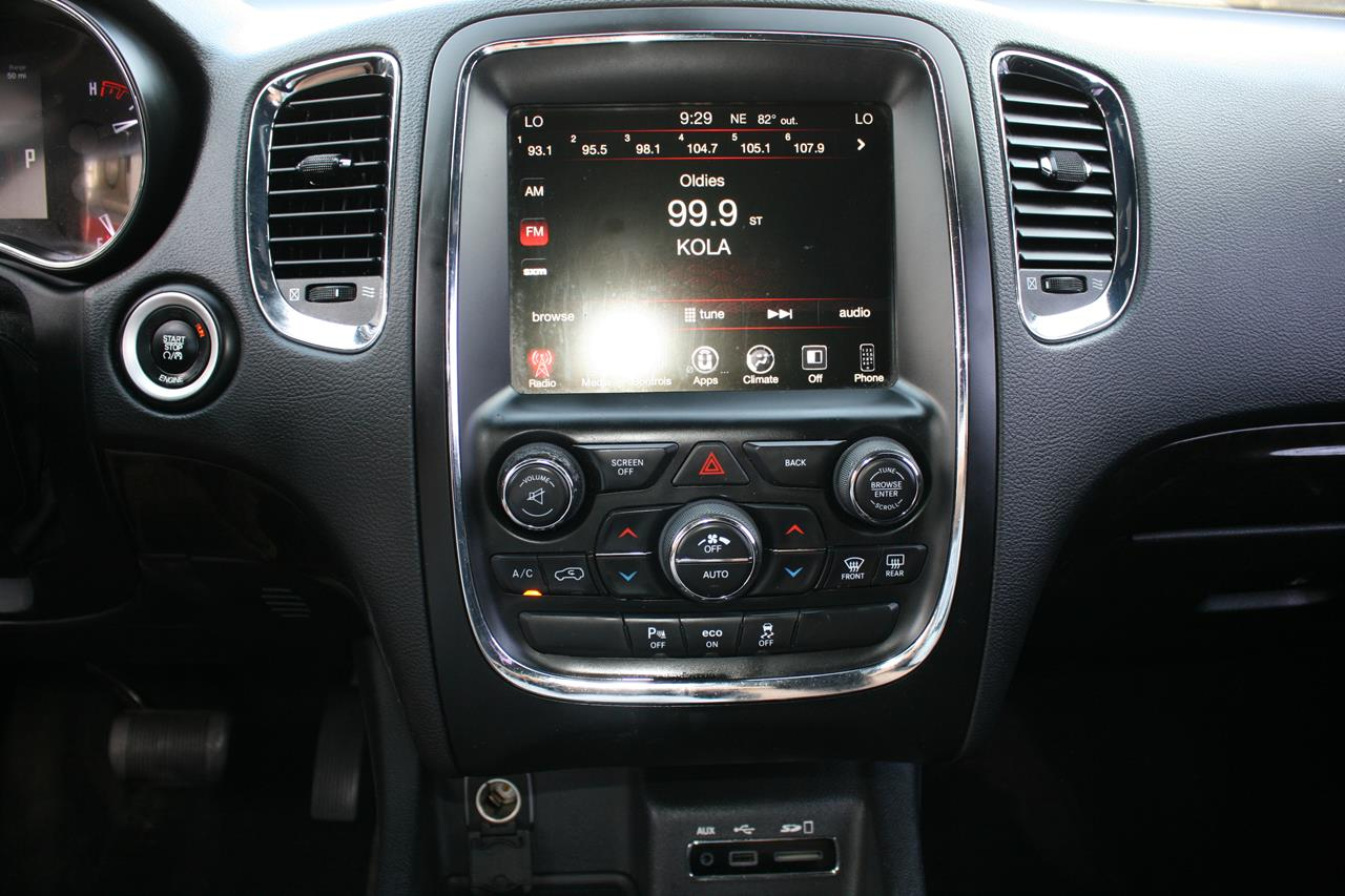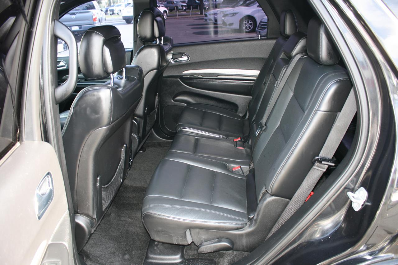As you can see, the leather-trimmed interior is full of features to fulfill the driver's needs as well as passengers' demands. Inside you will find an incredible dash mounted media center, powered and heated front seats, a memory driver's seat, keyless ignition, a leather steering wheel with audio controls, Bluetooth technology, and a great sound system with USB connection and audio auxiliary input. Seating is flexible and adaptable for all of life's needs. Innovative fold and tumble seats provide lots of combinations that maximize the utility of the Durango, giving plenty of room for the family vacation.