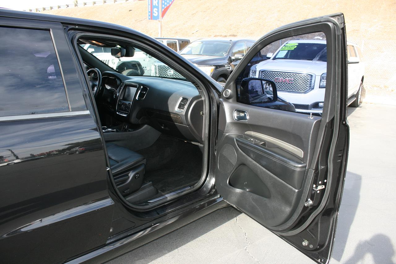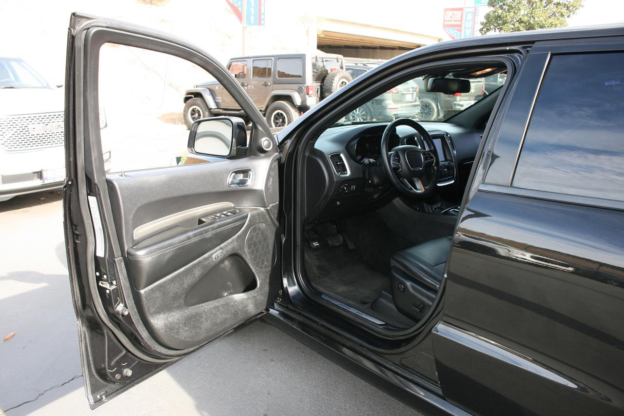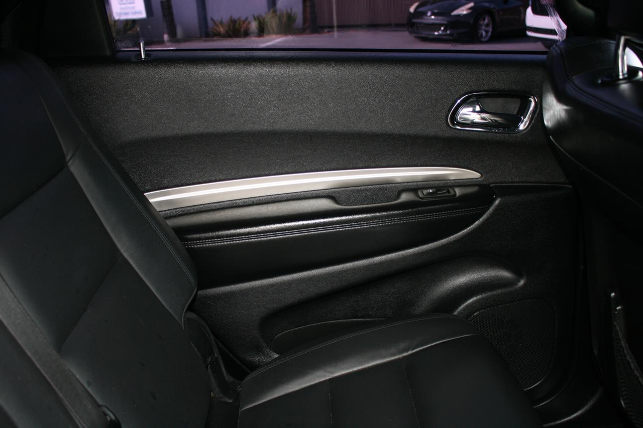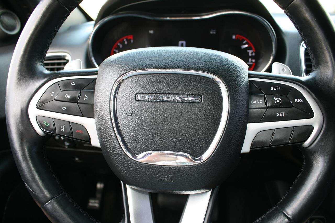 As you can see, the leather-trimmed interior is full of features to fulfill the driver's needs as well as passengers' demands. Inside you will find an incredible dash mounted media center, powered and heated front seats, a memory driver's seat, keyless ignition, a leather steering wheel with audio controls, Bluetooth technology, and a great sound system with USB connection and audio auxiliary input. Seating is flexible and adaptable for all of life's needs. Innovative fold and tumble seats provide lots of combinations that maximize the utility of the Durango, giving plenty of room for the family vacation.