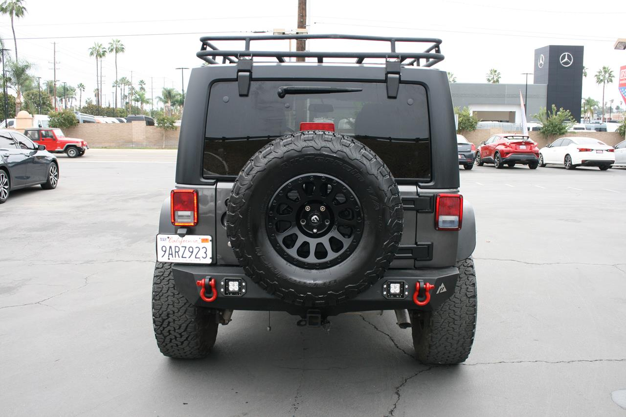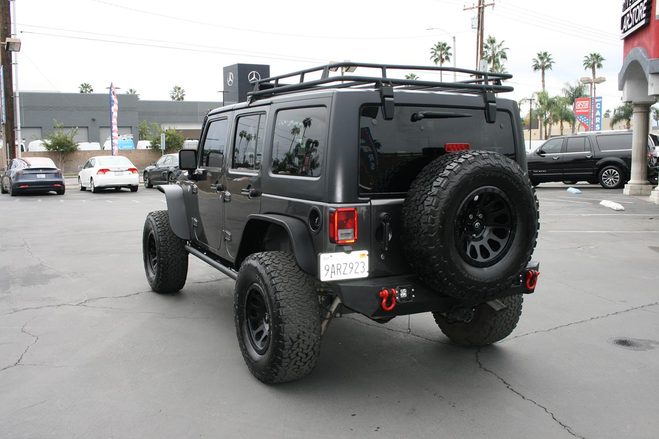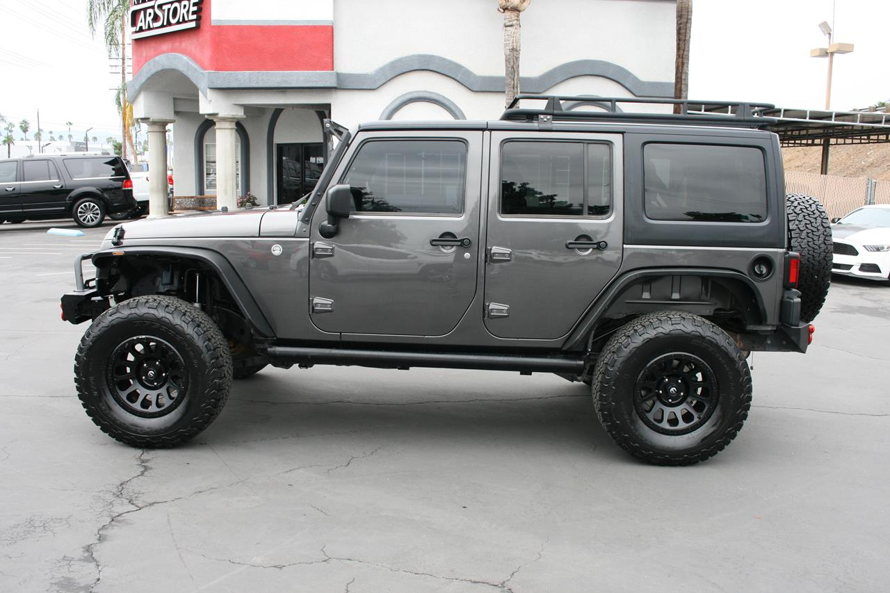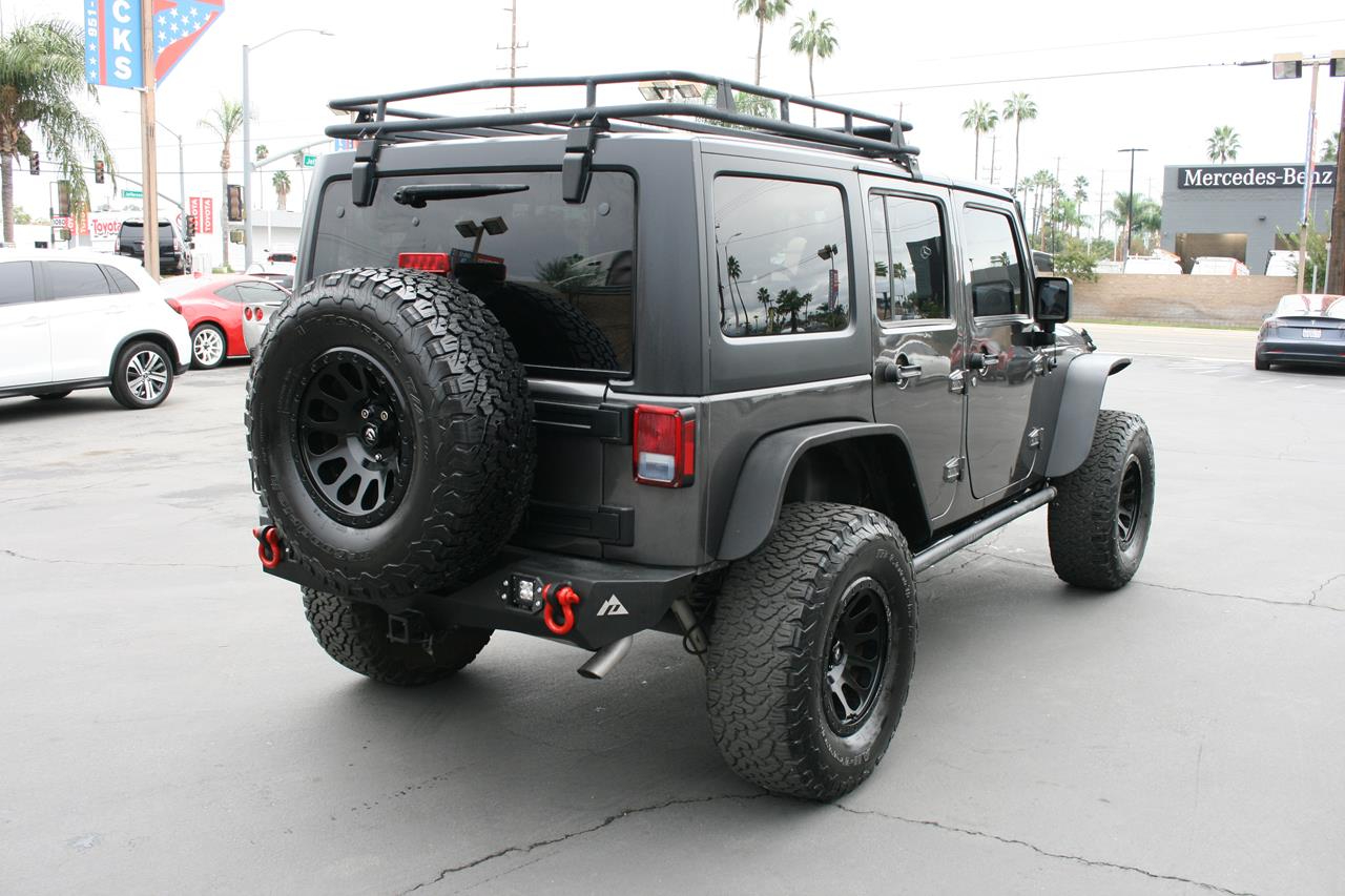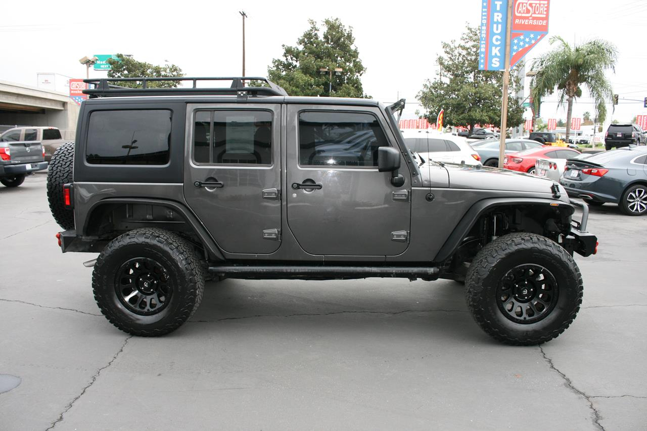 Our 2016 Jeep Wrangler Unlimited Sahara 4x4 shown in a Rhino paint scheme, is ready to handle everything thrown its way. Powered by a 3.6 Liter V6 that produces 285hp and almost as much torque while combined with the rock-solid Dana axles managed by a 5 Speed Automatic transmission. This Four Wheel Drive will allow you to maintain civility or let you carve your path where ever you see fit while offering near 21mpg. With city streets and freeways providing an increasingly unfriendly atmosphere to standard, car-based suspensions, large tires and real ground clearance are increasingly handy for the committed urbanite. Take a look at one of the most widely recognized terrain busting, four-door vehicles in the world. This Jeep looks sharp with 17 inch Fuel alloy rims, Amp Research power running boards, aftermarket windshield LED lightbar, Rough Country 3 inch lift, aftermarket steel front and rear bumpers, aftermarket roof rack and aftermarket LED headlights.