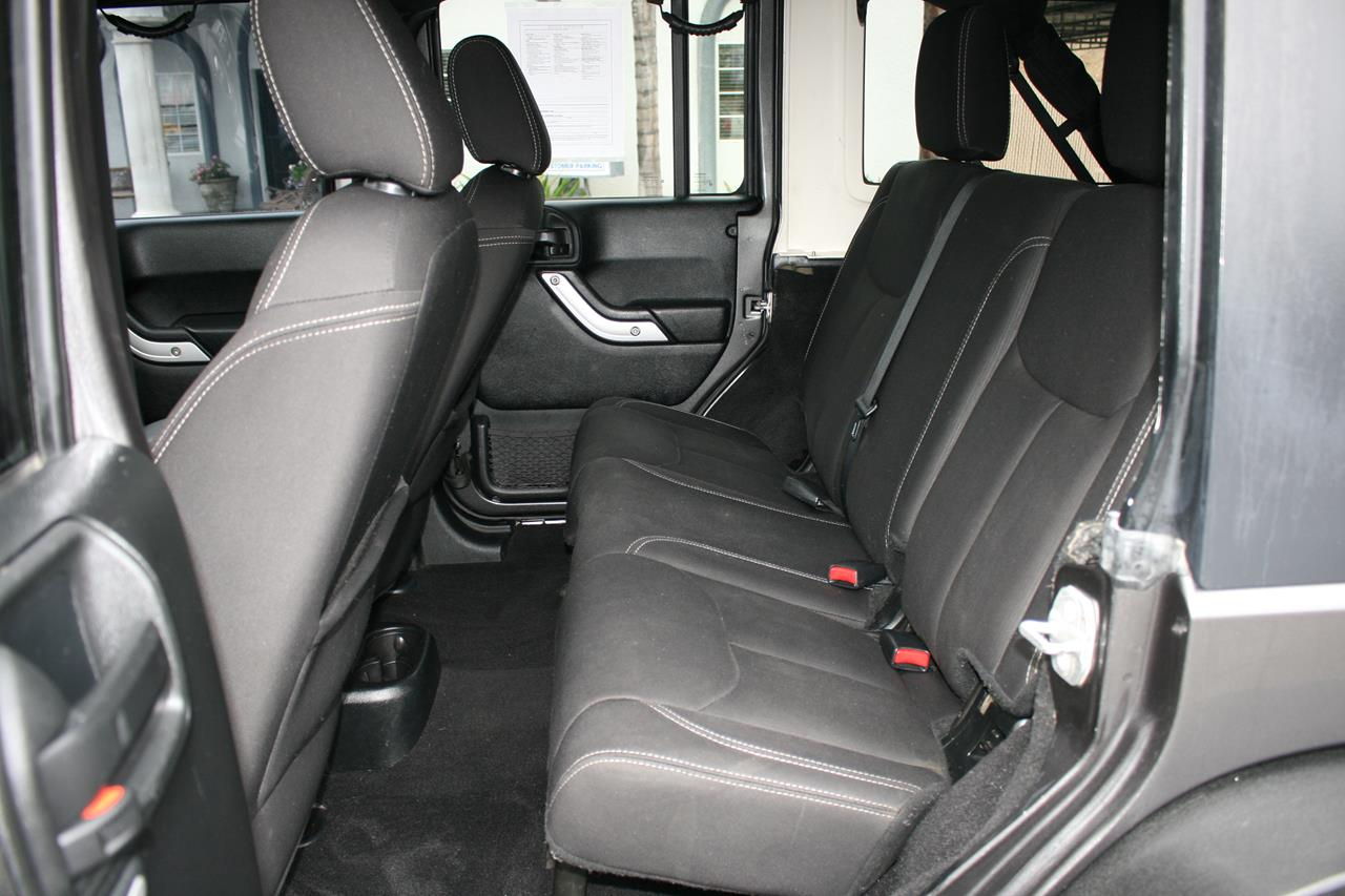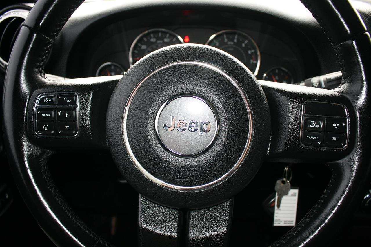 Stepping in or out of most potholes does nothing more than spill your drink. This Jeep is loaded. It has full power accessories, cruise control, a leather steering wheel with audio controls, and a great stereo with USB connection. If you get the urge to take an open-air cruise, just remove the top, put on some shades, crank up the amazing sound system, and hit the road!