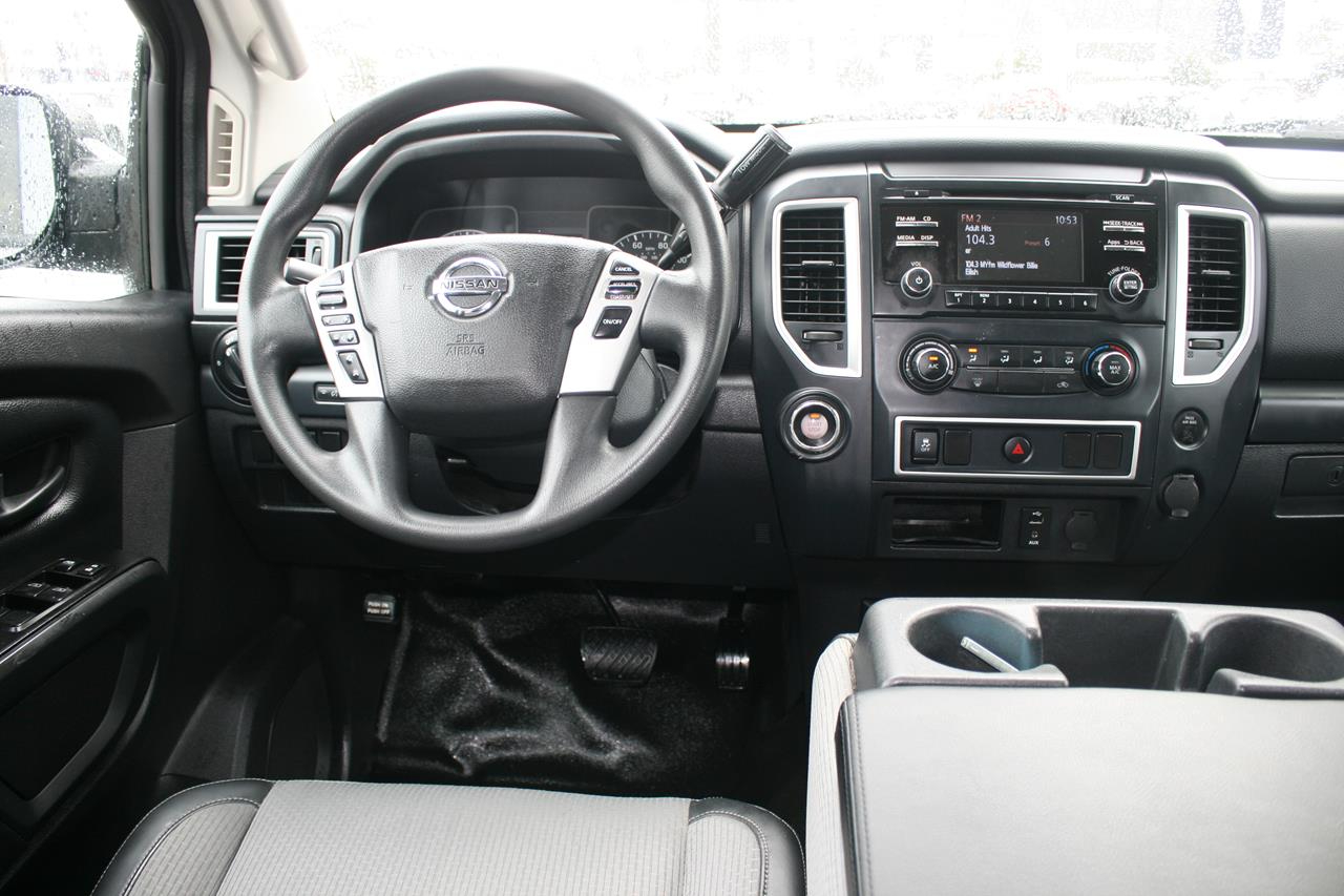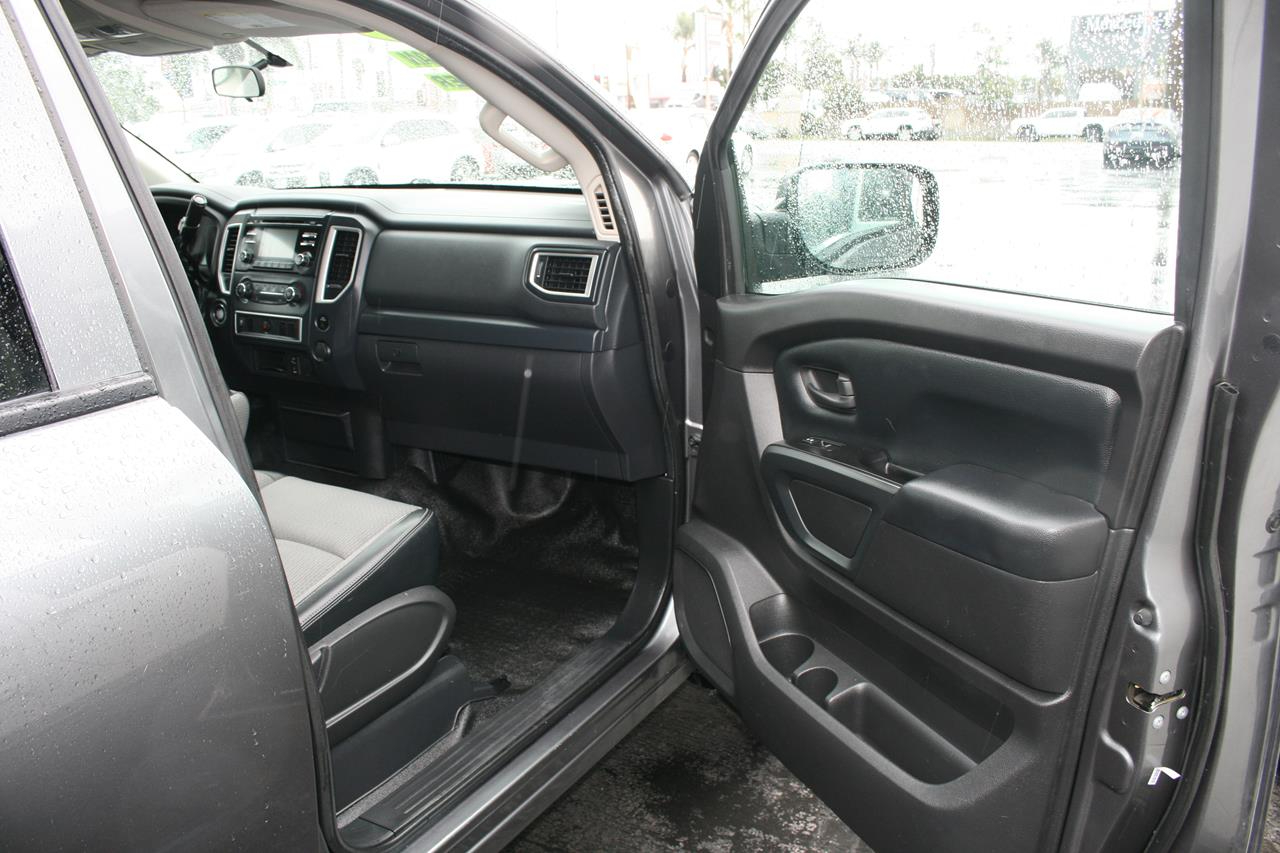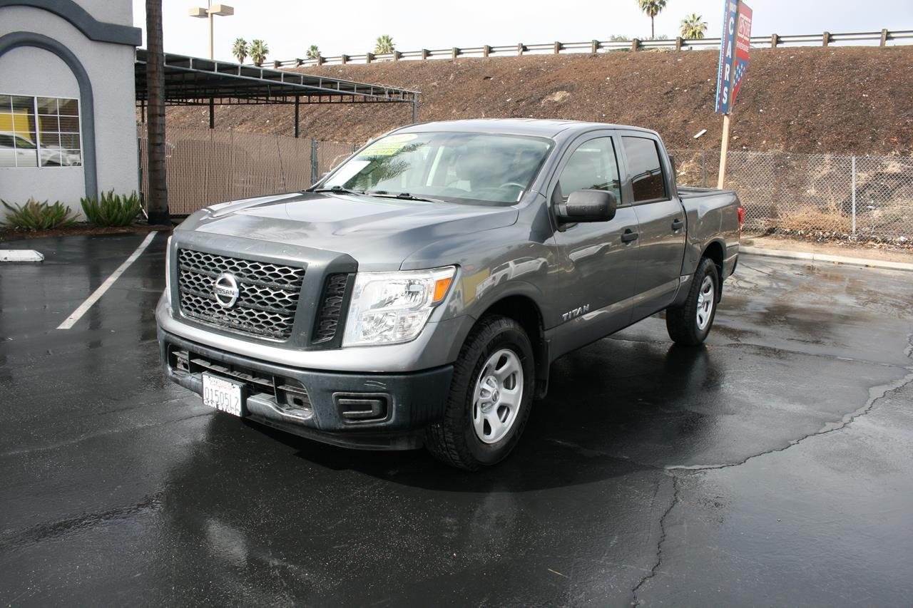 Amazing is one word that describes our 2017 Nissan Titan Crew Cab S shown off in a lustrous Gun Metallic. Powered by a 5.6 Liter V8 that offers 390hp on demand while connected to a sturdy 7 Speed Automatic transmission. Our Rear Wheel Drive can handle muddy rural roads, mountain terrain, towing your boat, or hauling lumber are no challenge for our Titan all while offering near 21mpg. The beefy front suspension eases you down the road in comfort while the rear set up is tough enough to keep up with your demanding life.