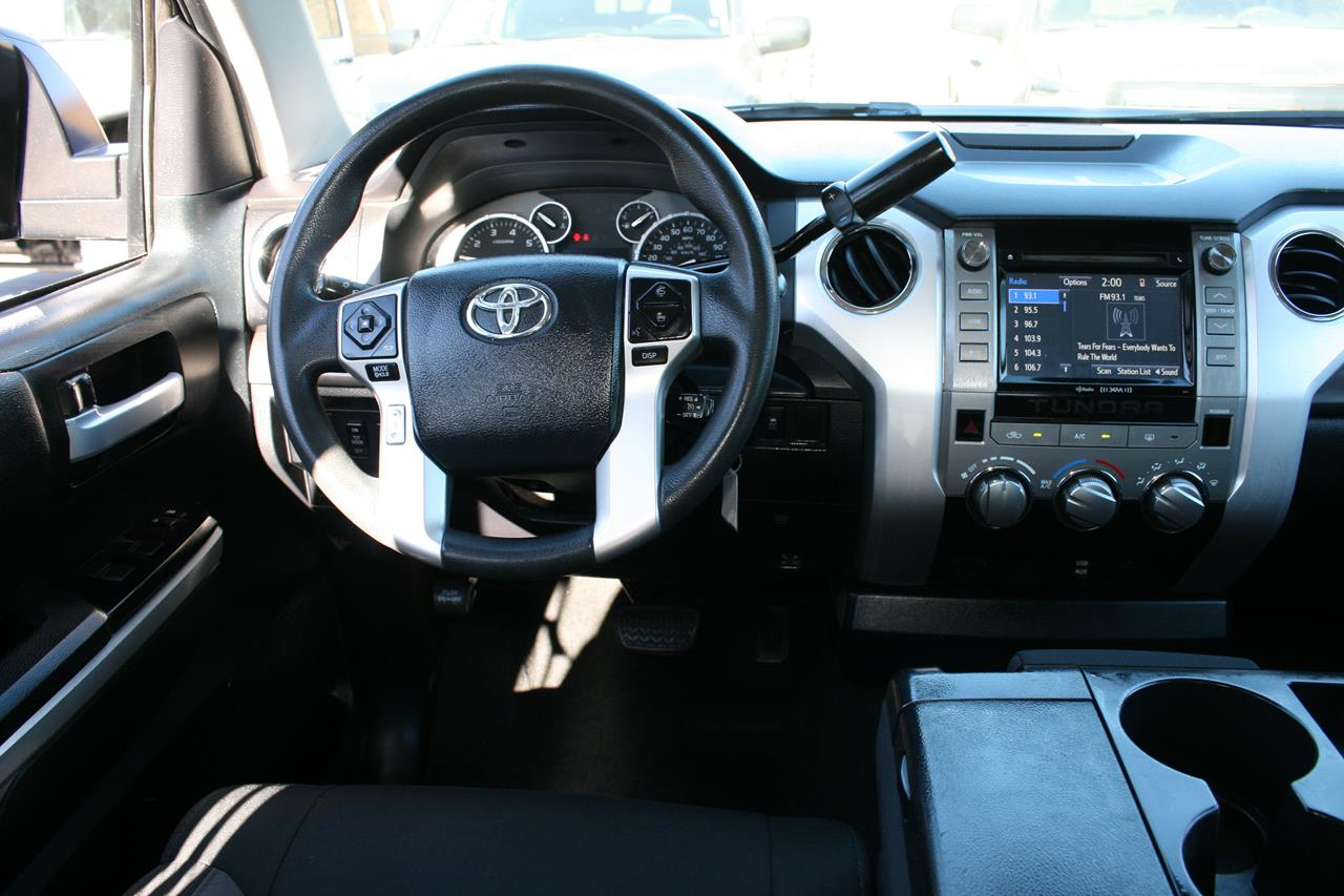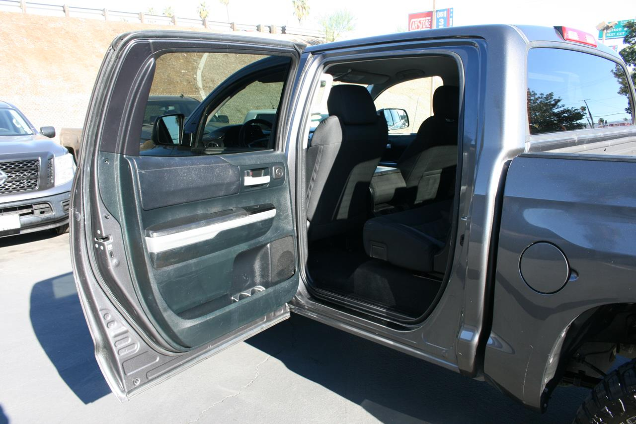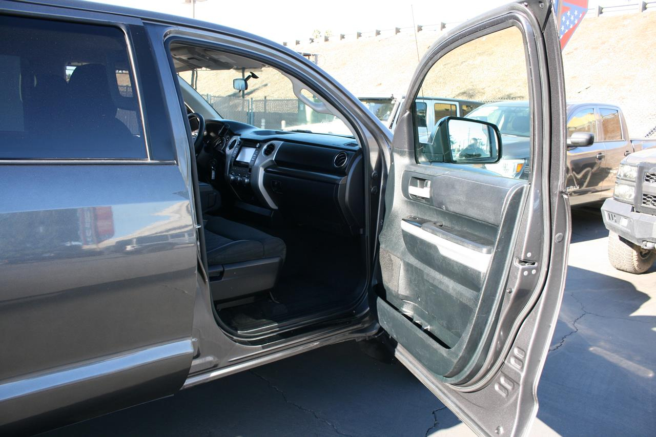 Amazing is one word that describes our 2017 Toyota Tundra CrewMax SR5 shown off in a lustrous Magnetic Gray Metallic. Powered by a 4.6 Liter V8 that offers 310hp on demand while connected to a sturdy 6 Speed Automatic transmission. Our Rear Wheel Drive can handle muddy rural roads, mountain terrain, towing your boat, or hauling lumber are no challenge for our Tundra all while offering near 19mpg. The beefy front suspension eases you down the road in comfort while the rear set up is tough enough to keep up with your demanding life.