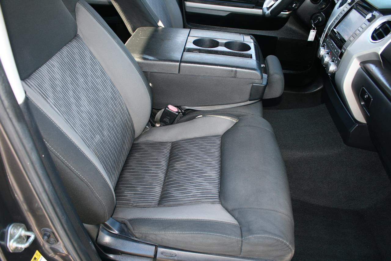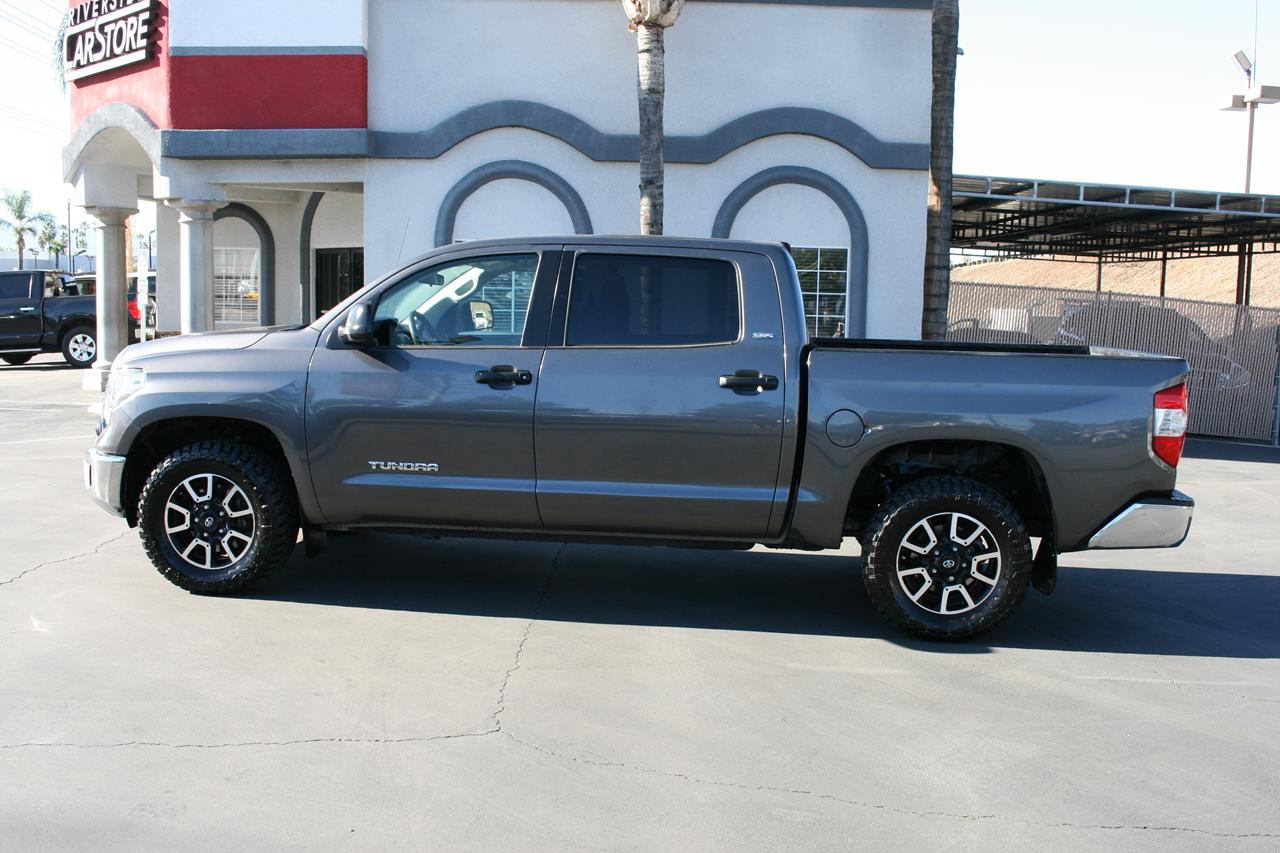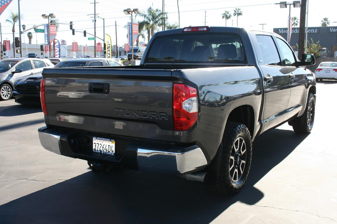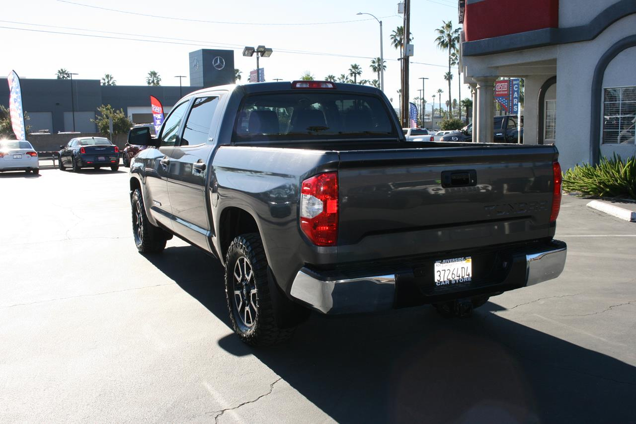 Amazing is one word that describes our 2017 Toyota Tundra CrewMax SR5 shown off in a lustrous Magnetic Gray Metallic. Powered by a 4.6 Liter V8 that offers 310hp on demand while connected to a sturdy 6 Speed Automatic transmission. Our Rear Wheel Drive can handle muddy rural roads, mountain terrain, towing your boat, or hauling lumber are no challenge for our Tundra all while offering near 19mpg. The beefy front suspension eases you down the road in comfort while the rear set up is tough enough to keep up with your demanding life.