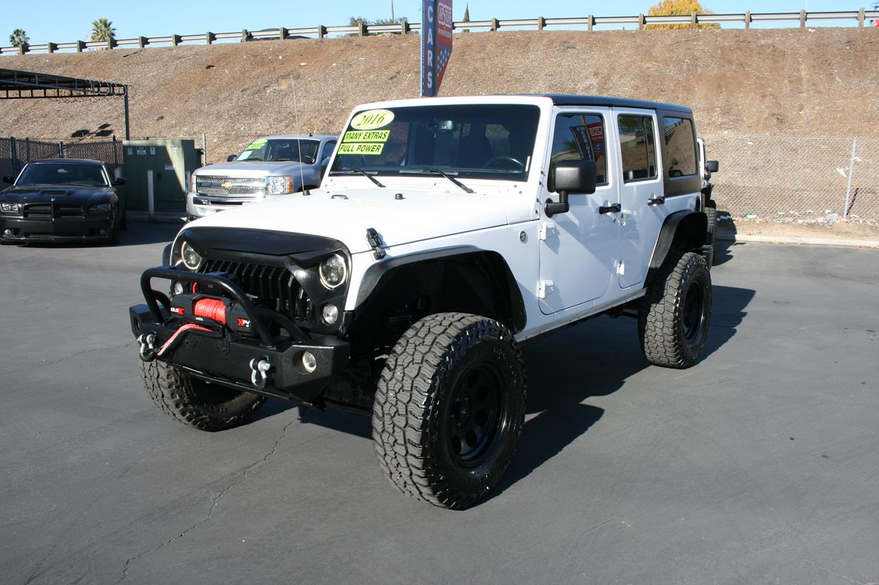 Our 2016 Jeep Wrangler Unlimited Sport 4x4 shown in a Bright White paint scheme, is ready to handle everything thrown its way. Powered by a 3.6 Liter V6 that produces 285hp and almost as much torque while combined with the rock-solid Dana axles managed by a 5 Speed Automatic transmission. This Four Wheel Drive will allow you to maintain civility or let you carve your path where ever you see fit while offering near 21mpg. With city streets and freeways providing an increasingly unfriendly atmosphere to standard, car-based suspensions, large tires and real ground clearance are increasingly handy for the committed urbanite. Take a look at one of the most widely recognized terrain busting, four-door vehicles in the world. This Jeep is loaded with a X-Bull steel front bumper with LEDs and built-in winch, aftermarket steel flat fenders, aftemarket LED headlights, aftermarket front grille, a Teraflex 9550 3 inch lift, aftermarket steel inner fender liners and 35 inch tall tires with 17 inch Pro Comp Xtreme aluminum wheels!